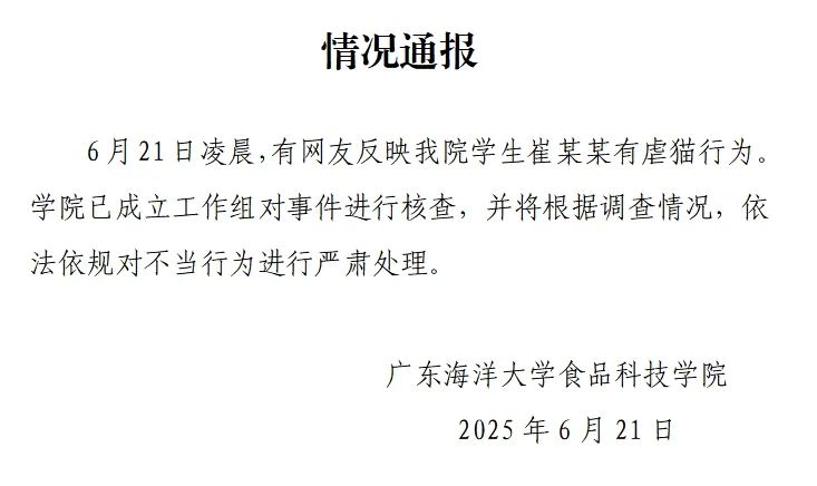 网传有学生虐猫,广东一高校通报